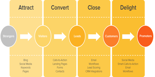 Before we start, as a reminder of what inbound marketing is, here’s a brief reminder of the 4 different stages of inbound: