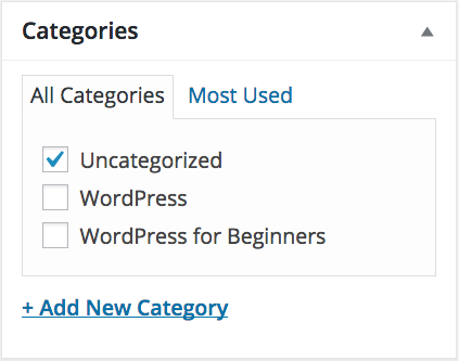 In the example above, you could create sub-categories of ‘Uncategorized’, ‘WordPress’ or ‘WordPress for Beginners’.