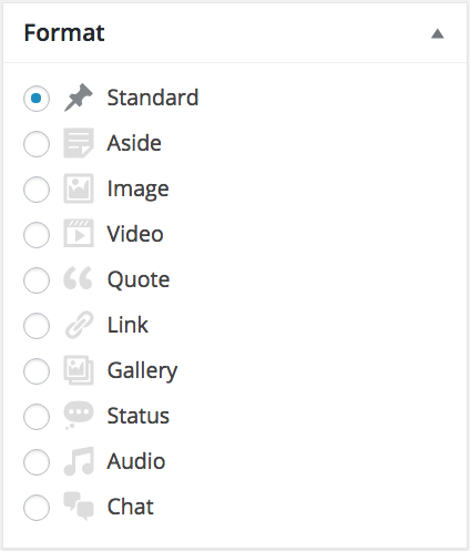 From here you can change the format of the post you’re uploading, for example if it’s an image or video. However for blog posts you will always want to select ‘Standard’, which is the default setting